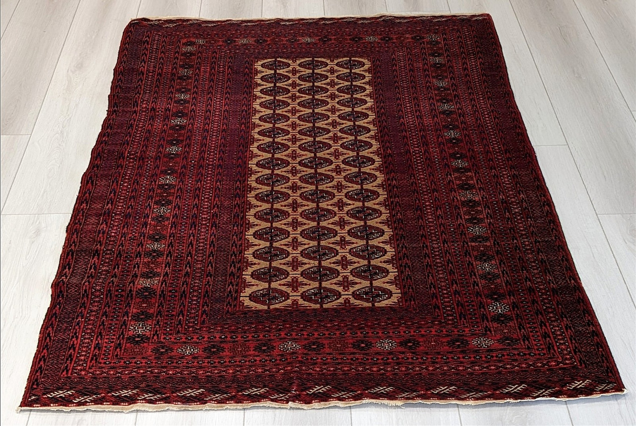 Small Afghan 2’6” x 4’3” Red Wool Medallion Covered Area Rug